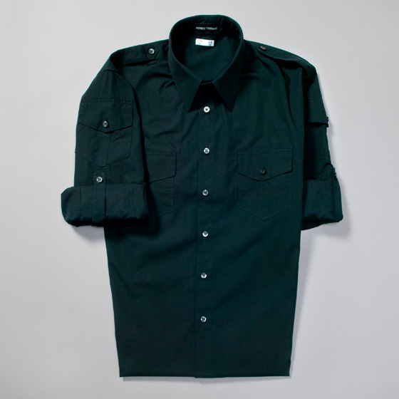 • Long Sleeve Military Styled Shirt in Black (shown with sleeves rolled)